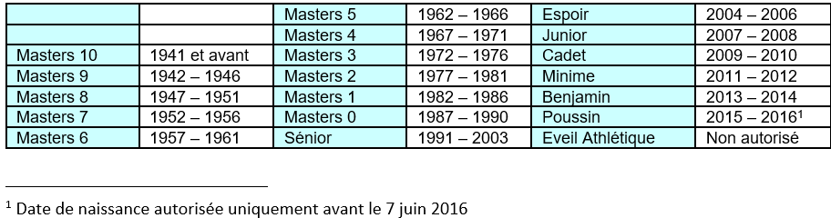 - Un certificat médical datant de moins d’un an à la date de la course et comportant la mention « de non-contre-indication à la pratique de l’athlétisme en compétition » (pas de PPS).